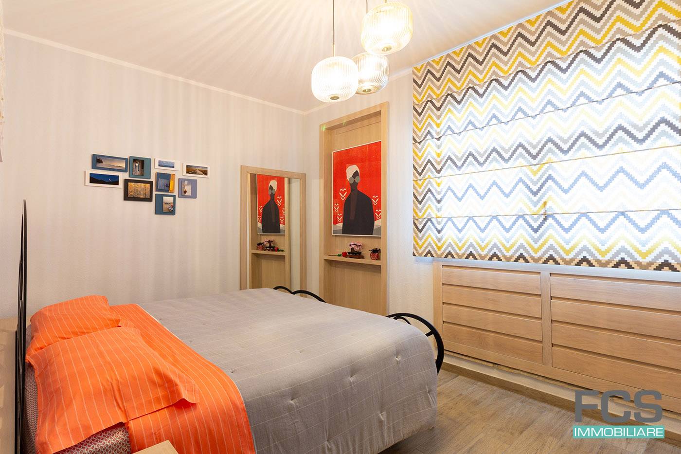 Internamente veniamo accolti da una moderna zona giorno open space con cucina a vista, arredata con gusto ed eleganza, completa di complementi di arredo di design perfettamente intonati. Materiali di prima scelta, legno massello ed elettrodomestici nuovi!